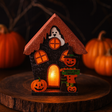 Bir şömine rafına veya yan dolaba yerleştirildiğinde, ışık yakındaki yüzeylere yayılır, mekanınıza derinlik ve sakin, amber bir vurgu katar. Oyuncu kesikler—küçük pencereler, dikkatli bir hayalet, gülümseyen balkabakları—yumuşak silüetler oluşturur ve saatten çok gözle hareket eder. Çatı çizgisi boyunca, biyobozunur simlerin ince bir serpiştirmesi ışığı yakalar, sahneyi bastırmadan sessiz bir parıltı sunar. Sürdürülebilir malzemelerle düşünceli bir şekilde yapılmış, hem şenlikli hem de duyulara nazik gelir.