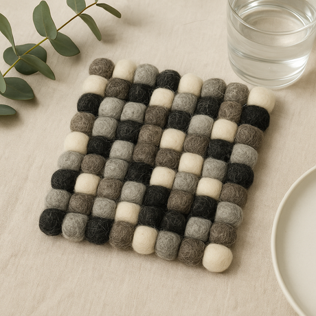 Keçe Topu Kare Bardak Altlıkları Çok Gri 4'lü Set